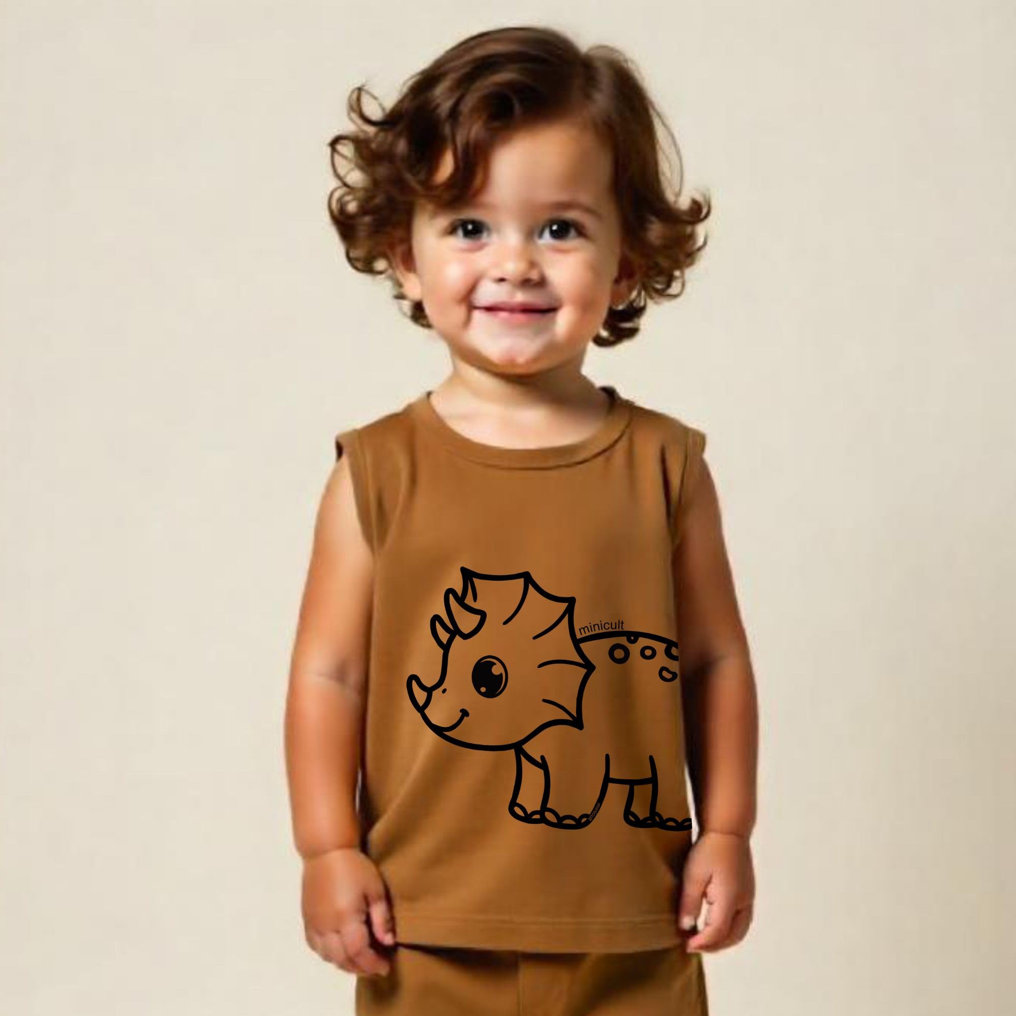 minicult Kids Matching Cotton Vest and Shorts coords with cute animal Prints(Dino Combo 2) Pack of 2