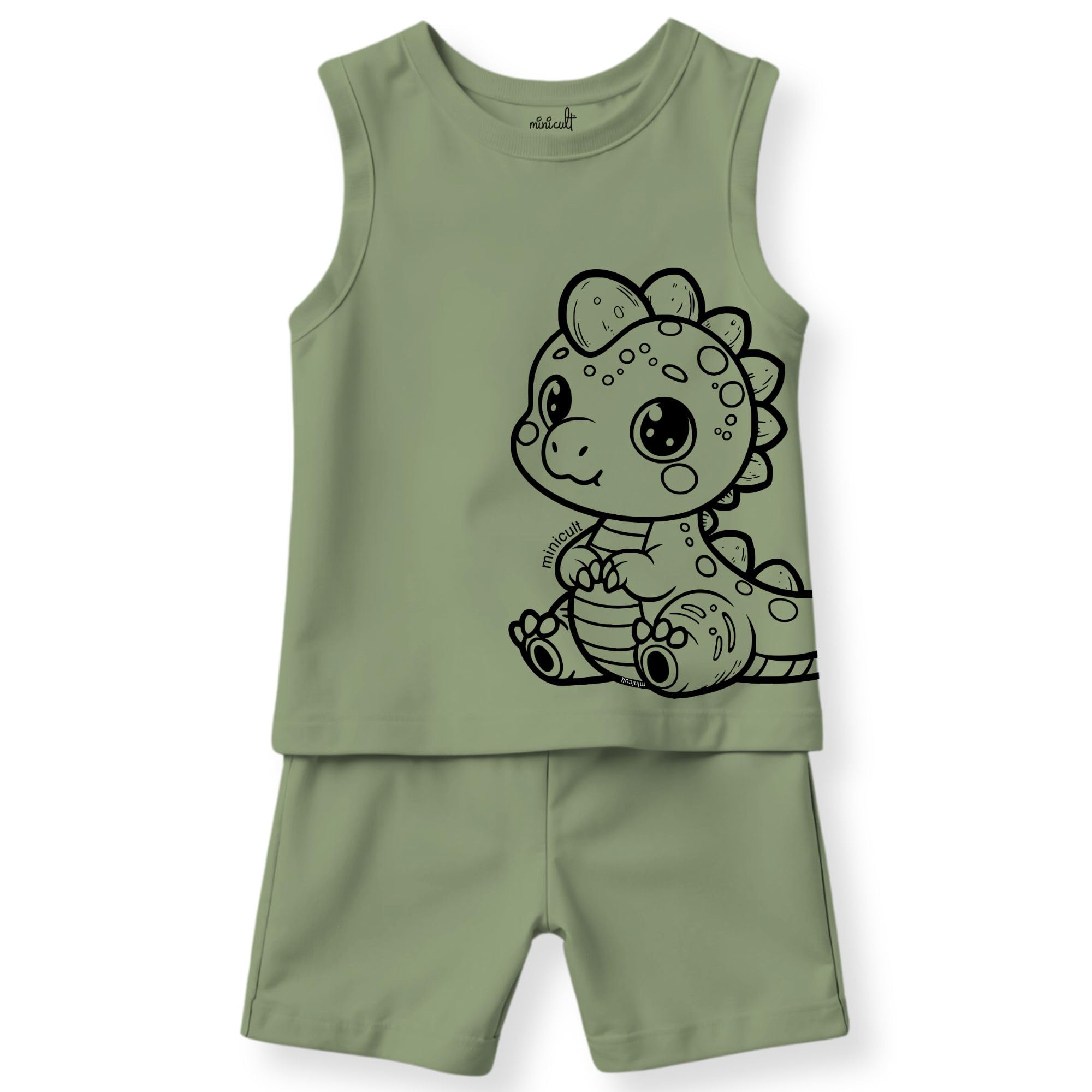 minicult Kids Matching Cotton Vest and Shorts coords with cute animal Prints(Giraffe Combo) Pack of 2