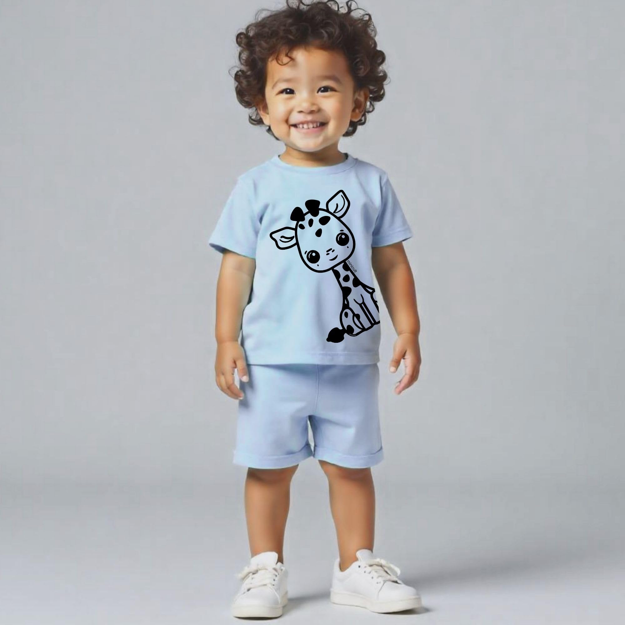 Minicult Coords Kids Set - 200 GSM Cotton Soft Fabric (Cute Dino, Giraffe Print) Let your little one stomp into style with the Minicult Coords Kids Set, designed for maximum comfort and cuteness. Made from premium 200 GSM cotton, this set is ultra-soft, breathable, and gentle on the skin, ensuring all-day comfort. The adorable Triceratops dinosaur print makes it a fun and trendy choice for young dino lovers. This two-piece co-ord set includes a classic round-neck T-shirt and matching shorts with pockets and adjustable drawstrings, providing a comfortable and flexible fit. Crafted with durable stitching and high-quality fabric, this outfit is long-lasting and easy to maintain—perfect for everyday wear, playdates, and lounging. Key Features: ✔ Pack of 2 sets of T shirt and shorts. ✔ Soft & Breathable 200 GSM Cotton – Perfect for all-day comfort ✔ Adorable Triceratops Dinosaur Print – Fun and stylish for little explorers ✔ Relaxed Fit with Elastic Waistband – Ensures easy movement and flexibility ✔ Shorts with Pockets & Drawstrings – Functional design for convenience and a secure fit ✔ Durable & Easy to Maintain – High-quality stitching for long-lasting wear ✔ Versatile Wear – Great for playtime, casual outings, or bedtime A must-have for dino-loving kids – grab the Minicult Coords Set today!